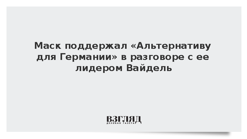 Американский миллиардер Илон Маск в ходе онлайн-дискуссии с лидером партии «Альтернатива для Германии» Алисой Вайдель заявил, что лишь АдГ может спасти Германию.