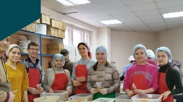 Участницы волонтерского объединения «Обеды для Победы» встречаются несколько раз в неделю и занимаются фасовкой сухпайков для бойцов. Делают они это совершенно бесплатно, в свободное от работы время.