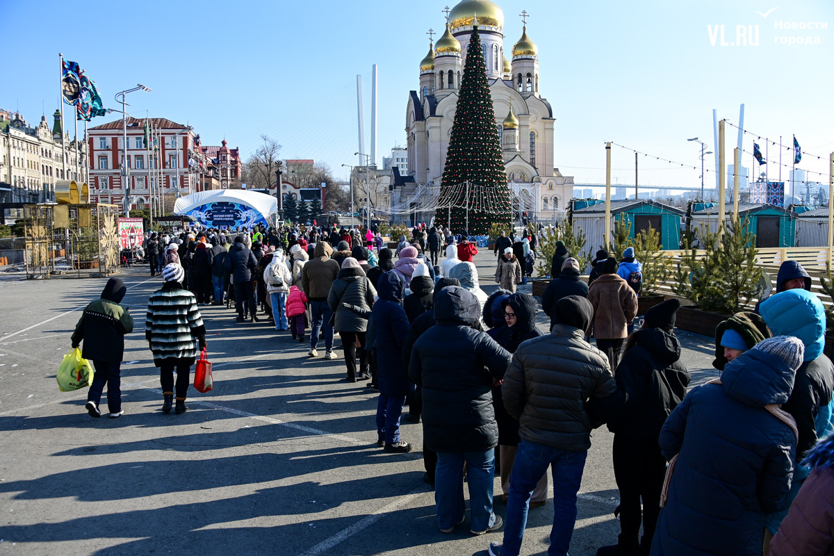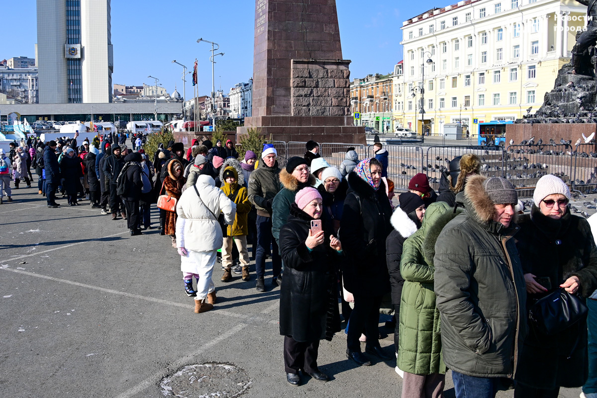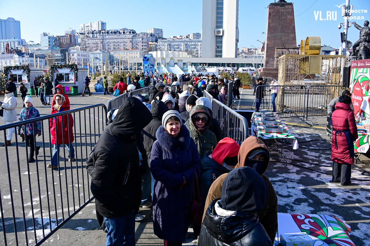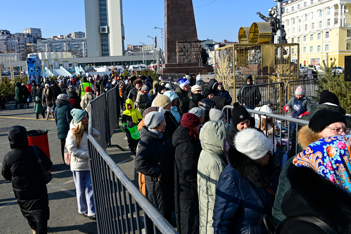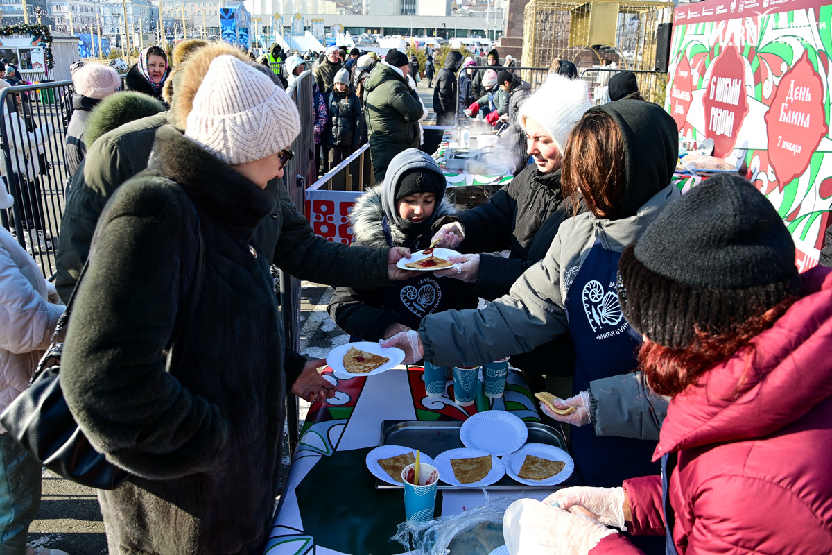 «У нас будет около тысячи порций. И по максимуму желающих должно хватить обязательно. Празднуем дальше вступление в Новый 2025 год. До масленицы нам ещё далеко, такой разогревчик перед масленицей – Visit Primorye решил устроить вот такое событие. А почему бы и нет? Потому что пельмени – это такое традиционное блюдо на новогоднем столе. А блины любят в нашей стране не только на масленицу. Кто не любит блины? Наверное, не найдется такого человека. Желающих очень много», – говорил один из ведущих, семенящий между поварами с гигантскими тарами жидкого теста.