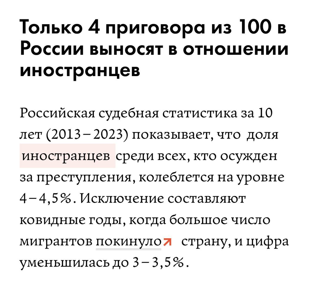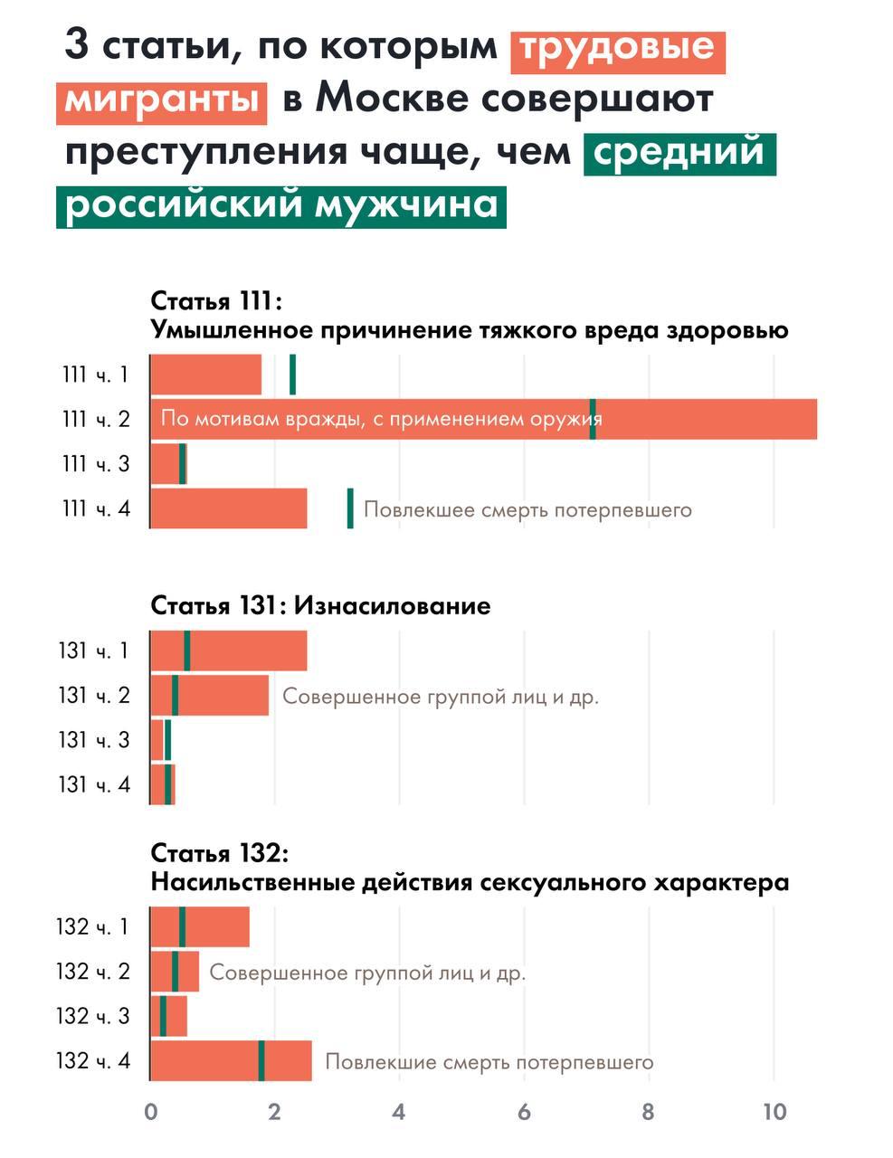 ❗️ Авторы «исследования» признают: в Москве и области мигранты совершают больше преступлений, причем в основном насильственных. Но акцент, конечно, делается на «общей миролюбивости».