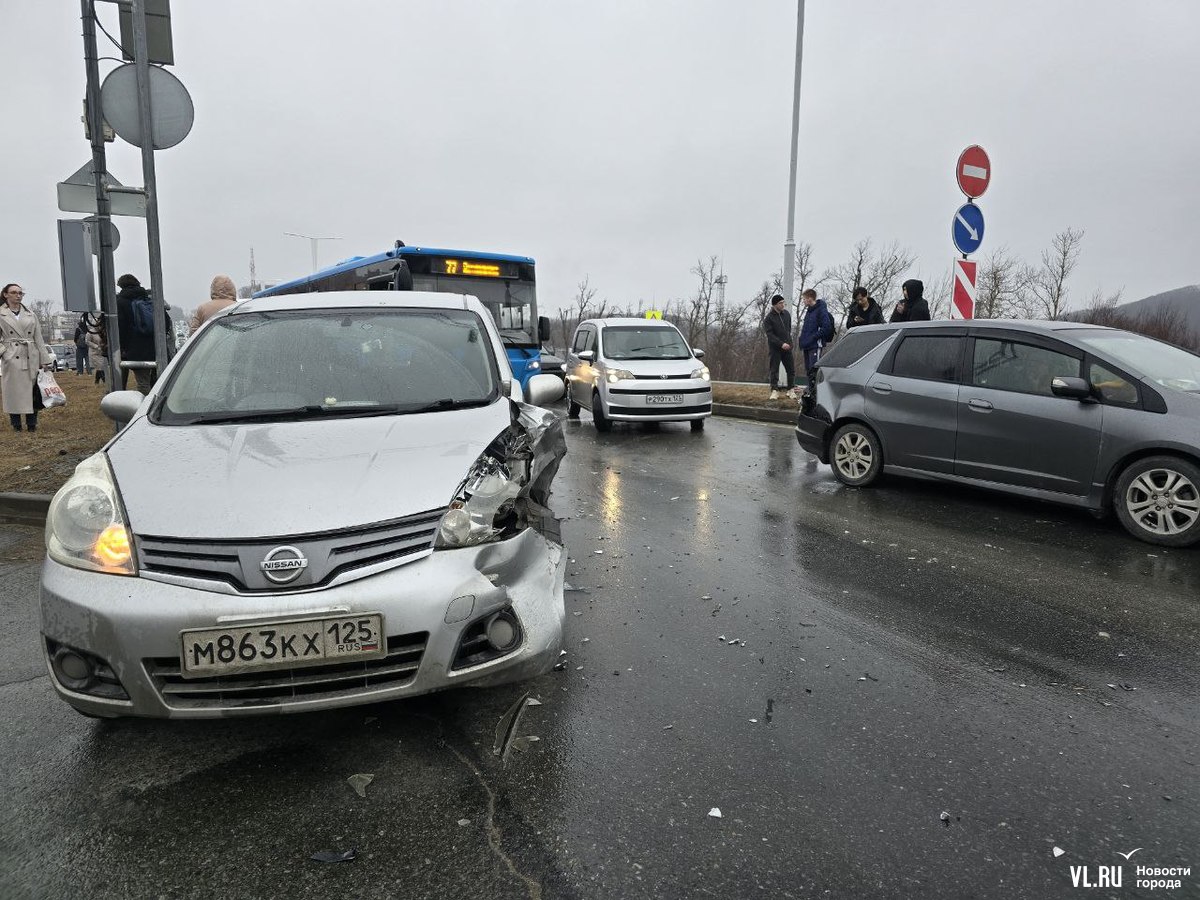 По словам очевидцев, Honda Fit Shuttle поворачивал налево, чего в этом месте делать нельзя. Водитель Nissan Note не успел затормозить и въехал ему в зад. Битые авто остановились так, что проехать между ними было очень трудно.