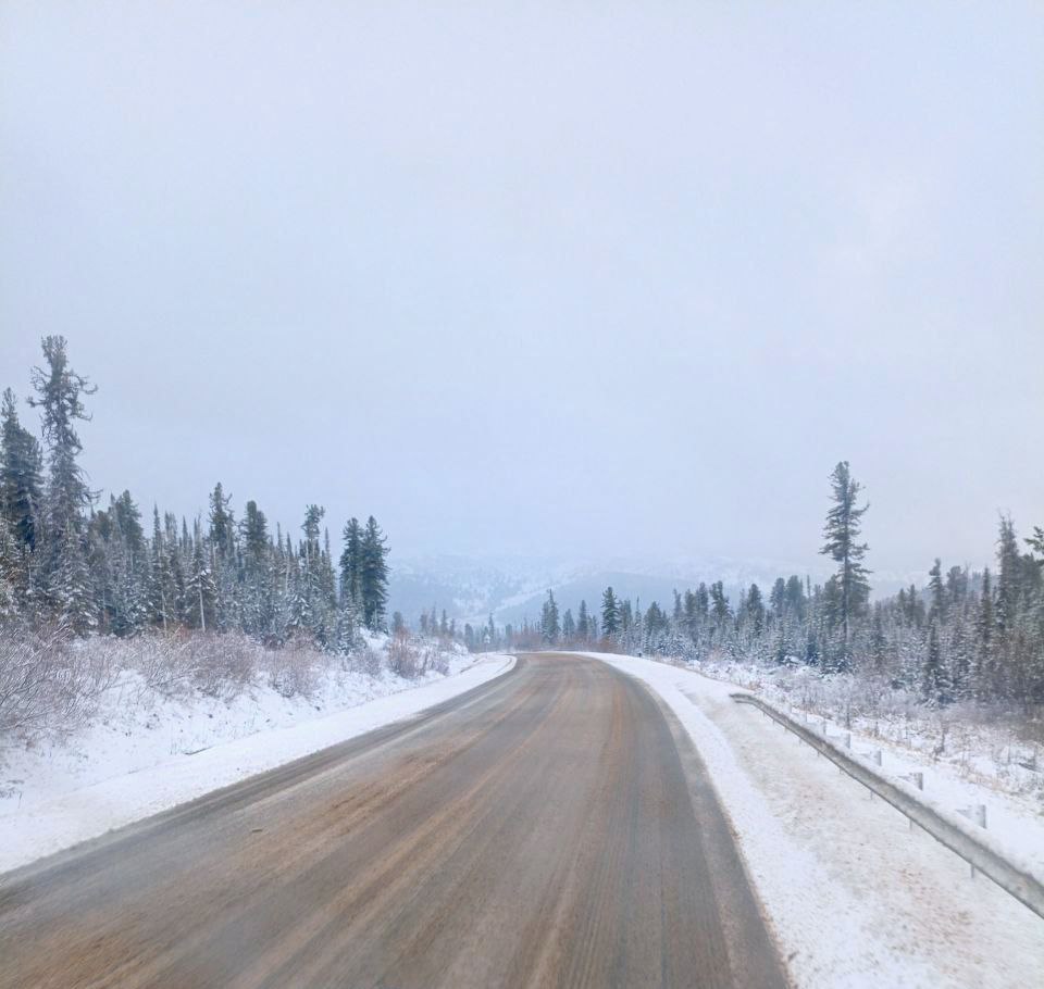 В Ермаковском районе на трассе уже выпал снег