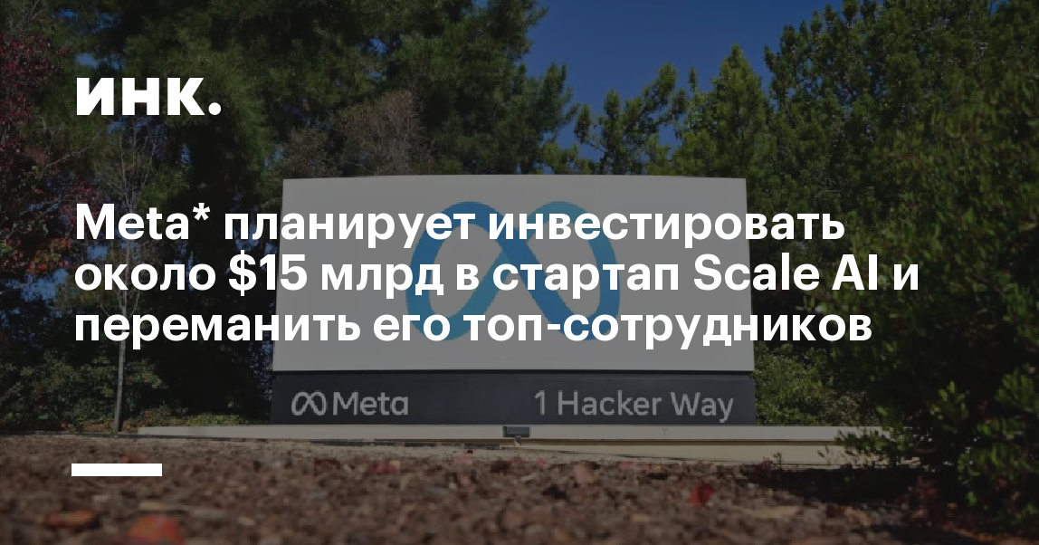 Компания Meta* намерена вложить около $15 млрд в стартап Scale AI, занимающийся разметкой данных, а также нанять его сооснователя и ведущих исследователей. Это одна из крупнейших сделок такого рода, с помощью которой Meta стремится догнать конкурентов.