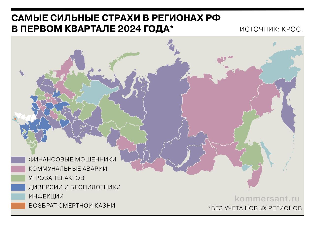 В рамках исследования «Национальный индекс тревожностей» коммуникационная компания КРОС проанализировала для «Ъ» главные страхи жителей каждого субъекта РФ.