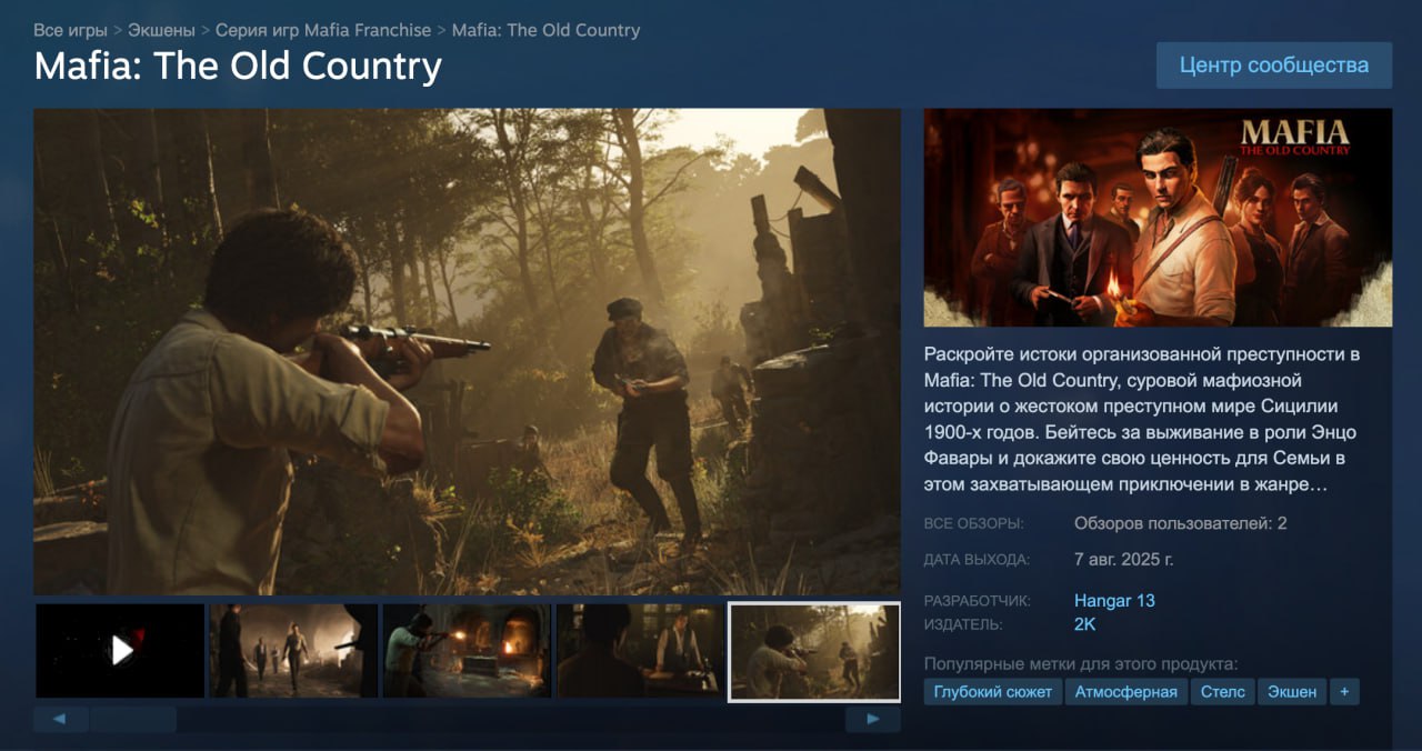 Вышла Mafia: The Old Country — продолжение культовой серии появилось в Steam на сутки раньше официального релиза.