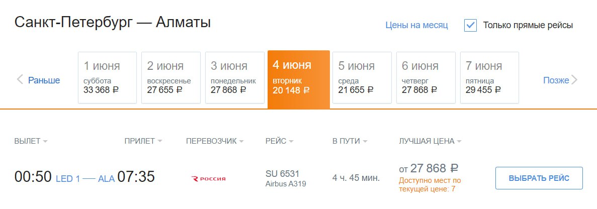✈️ 🇰🇿 «Россия» с 1 июня запускает новое направление — из Санкт-Петербурга в Алматы. Рейсы будут выполнять на Airbus A319 четыре раза в неделю — по понедельникам, вторникам, четвергам и субботам.