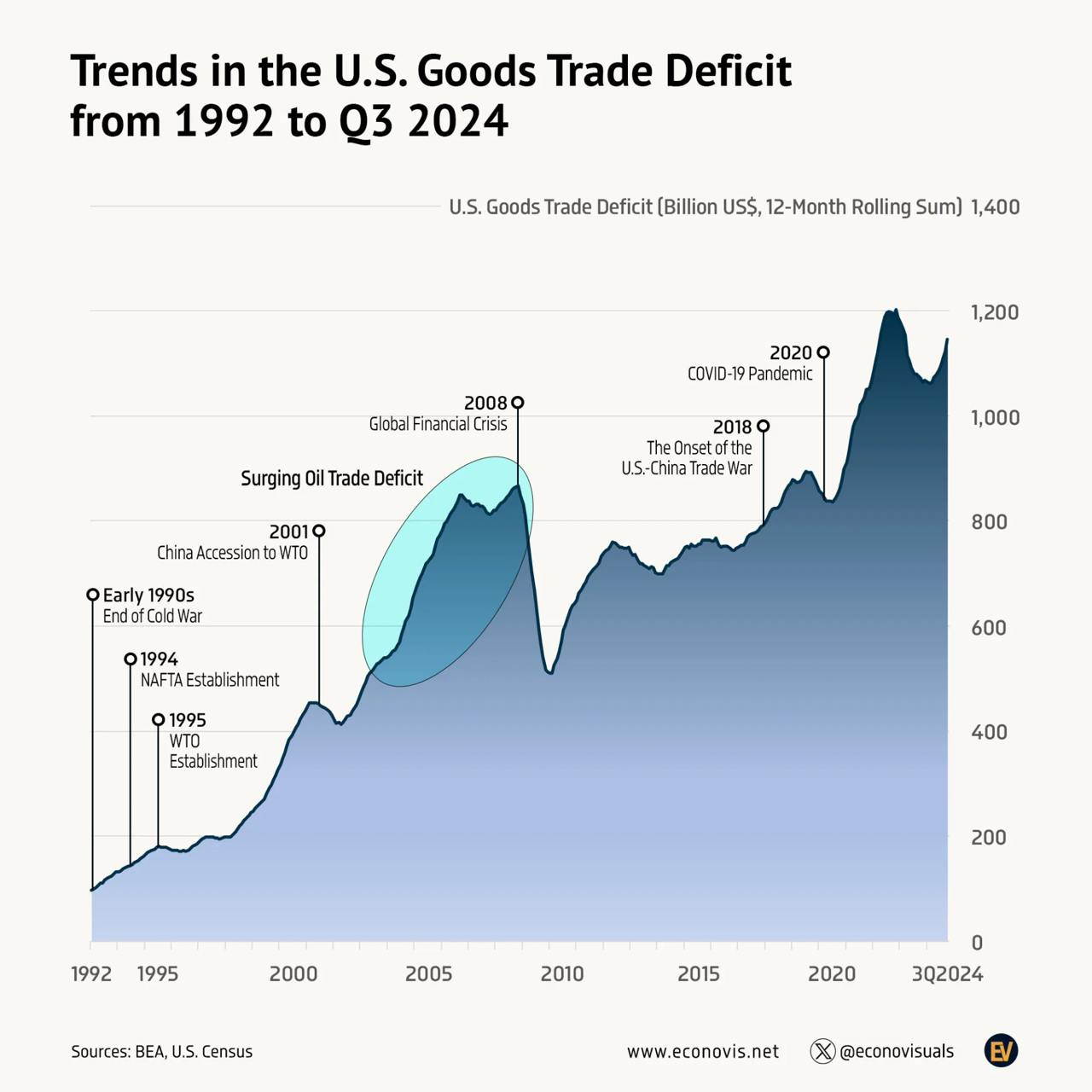 Сильно достанется и Канаде с Мексикой, тарифы в отношении которых могут вырасти вплоть до 25%. Чуть меньший удар - в 10-15% - придётся по Китаю и Европе. Трамп будет пытаться сократить торговый дефицит США, который достигает колоссального 1 триллиона долларов. Ради этого он хочет и девальвировать курс доллара в рамках своей перестройки буксующей американской экономики, достающейся в наследство от Байдена.
