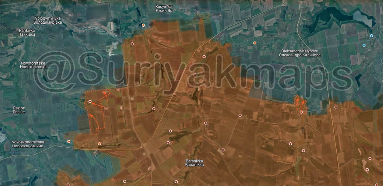 2. Ситуация на Константиновском направлении: Российская армия полностью взяла под контроль населенный пункт Заря и остальную часть выступа к югу от него. Кроме того, российские войска освободили Шевченко Первое, а также последние фермы к востоку от данного н.п.