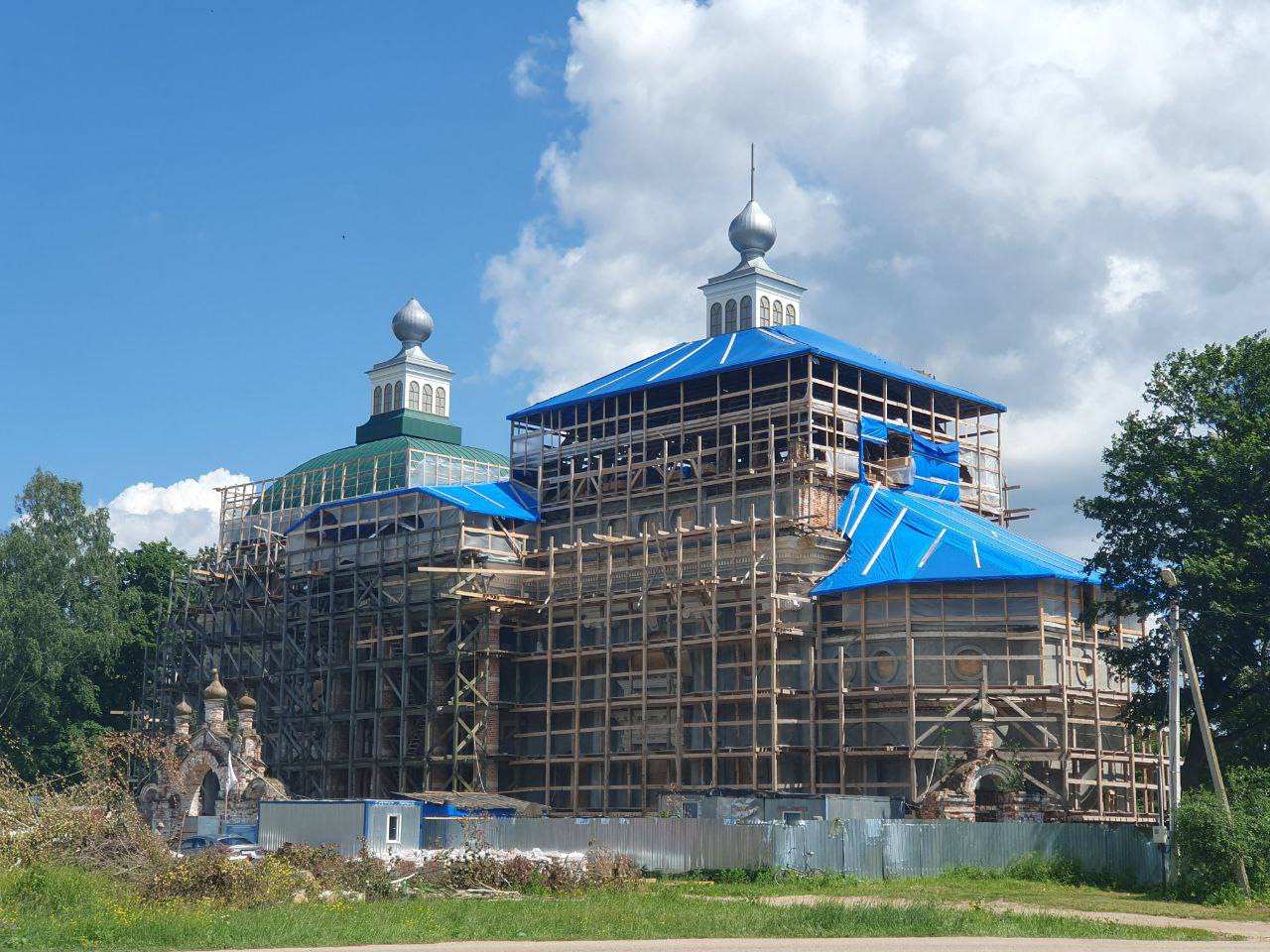 А вот Казанский храм в Яропольце наоборот восстанавливают. Много лет стоял красивый храм в ужасном состоянии, пока наконец его не передали Церкви. Теперь вот работа кипит!