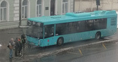 На Нарвском проспекте водитель автобуса перепутал тормоз с газом и въехал в остановку