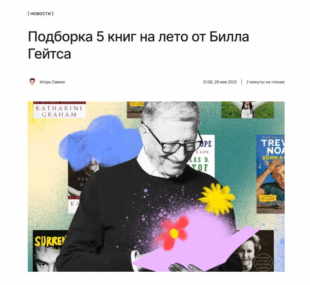 ΠΡΠ½ΠΎΠ²Π°ΡΠ΅Π»Ρ Microsoft Π² ΠΎΡΠ΅ΡΠ΅Π΄Π½ΠΎΠΉ ΡΠ°Π· ΠΏΠΎΠ΄Π΅Π»ΠΈΠ»ΡΡ ΡΠ²ΠΎΠ΅ΠΉ ΠΏΠΎΠ΄Π±ΠΎΡΠΊΠΎΠΉ ΠΊΠ½ΠΈΠ³, ΠΊΠΎΡΠΎΡΡΠ΅ ΡΠ΅ΠΊΠΎΠΌΠ΅Π½Π΄ΡΠ΅Ρ ΠΏΡΠΎΡΠΈΡΠ°ΡΡ ΡΡΠΈΠΌ Π»Π΅ΡΠΎΠΌ. ΠΡΠ΅ ΠΎΠ½ΠΈ β ΠΆΠΈΠ·Π½Π΅Π½Π½ΡΠ΅ ΠΌΠ΅ΠΌΡΠ°ΡΡ, Π² ΠΊΠΎΡΠΎΡΡΡ Π½Π°ΡΠ»ΠΈ ΠΎΡΡΠ°ΠΆΠ΅Π½ΠΈΠ΅ ΡΠ΅ΠΌΡ Π»ΠΈΠ΄Π΅ΡΡΡΠ²Π°, ΠΏΡΠ΅ΠΎΠ΄ΠΎΠ»Π΅Π½ΠΈΡ ΠΈ ΡΠ΅Π»ΠΎΠ²Π΅ΡΠ½ΠΎΡΡΠΈ.