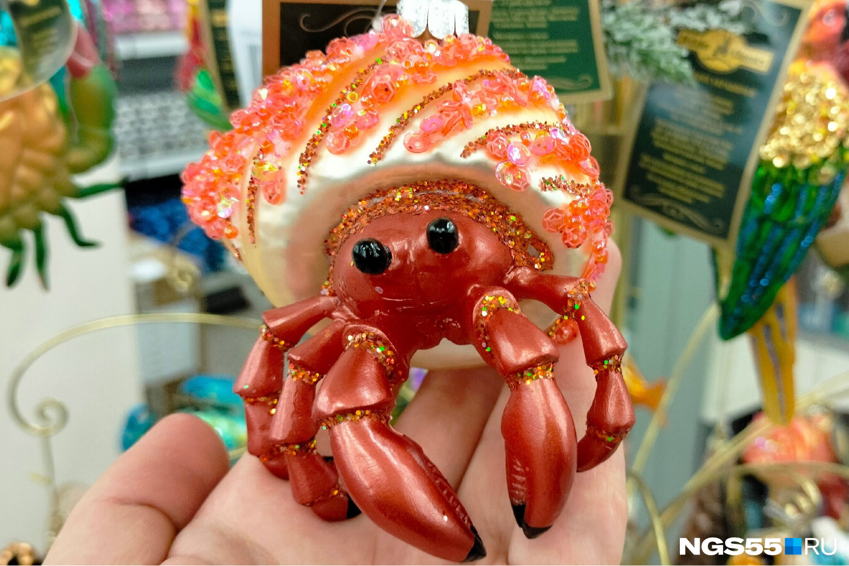 А как вы смотрите на то, чтобы украсить елку игрушками в виде морских обитателей? Милый краб-отшельник одобряет эту идею. Цена игрушки — 880 рублей.