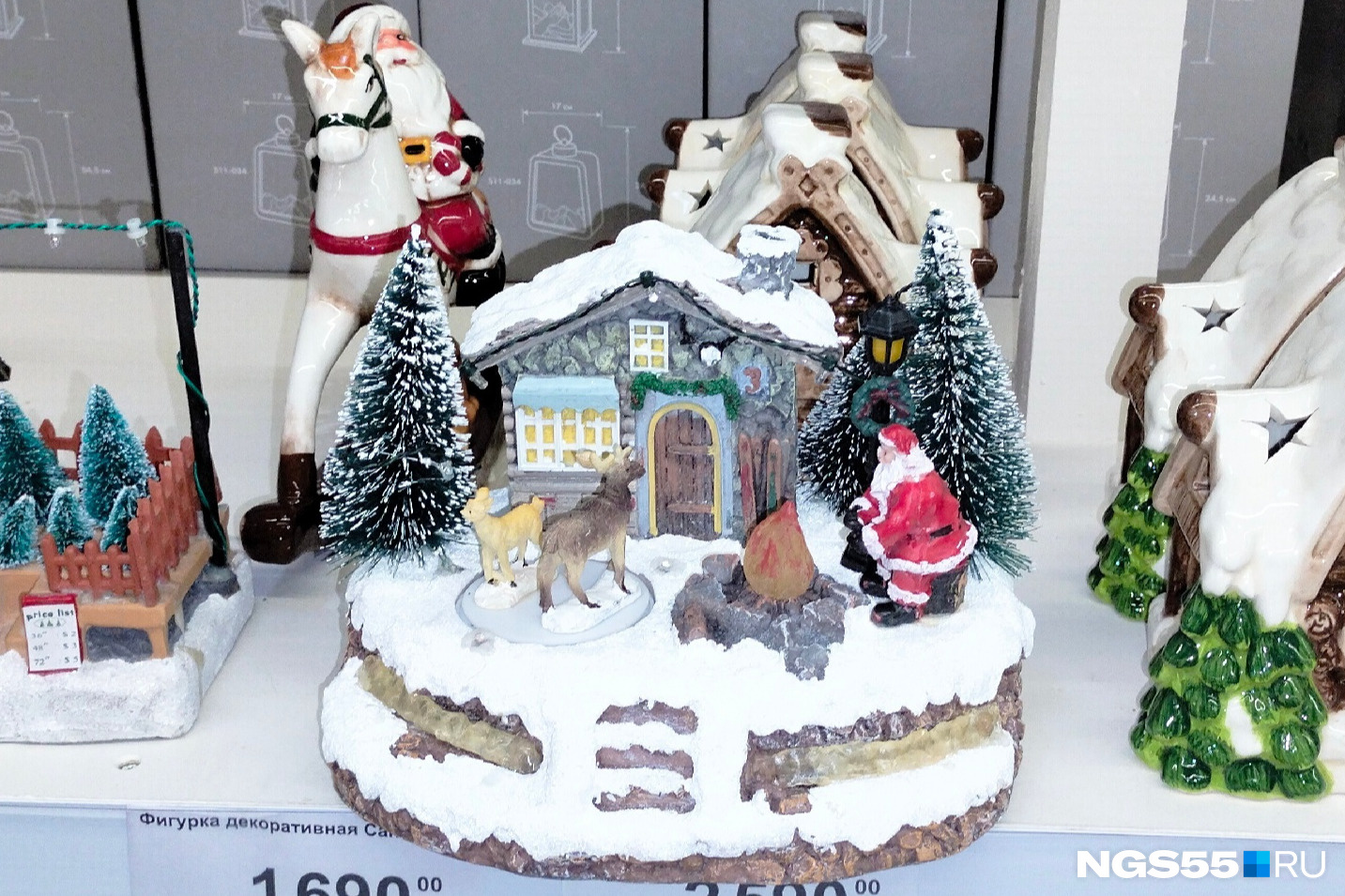 Сложно пройти мимо такого милого домика Санта-Клауса. Он продается за 2590 рублей. В магазинах много других композиций — новогодних магазинчиков и каруселей, припорошенных снегом.