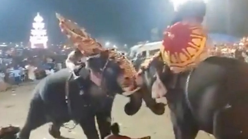 В индийском штате Керала ежегодный праздник Пурам в этом году подошёл к неожиданному окончанию — он закончился дракой слонов. Как пишет Daily Star, шествие у храма Тараккал было прервано, когда один из слонов, нёсший статую, набросился на другое гигантское животное.