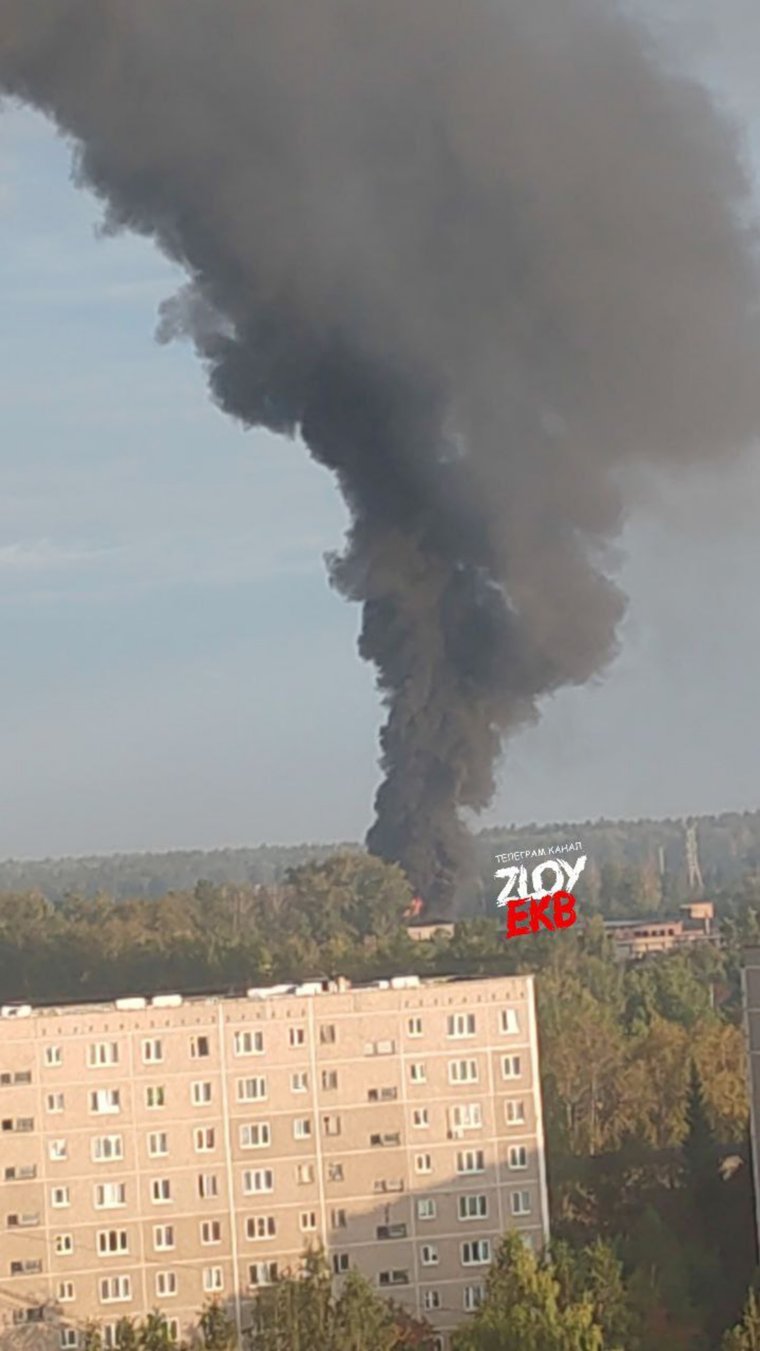 В Екатеринбурге на Уралмаше по улице Коммунистическая загорелся цех по переработке резины. Огромный столб дыма наблюдают жители района.