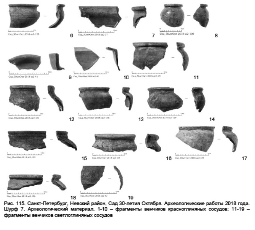 Что там можно найти в ходе раскопок, примерно понятно, благо в саду 30-летия Октября уже проводили исследование в 2018 году: керамика, клейменые кирпичи, кованые гвозди, осколки стеклянных сосудов, глиняные трубки.