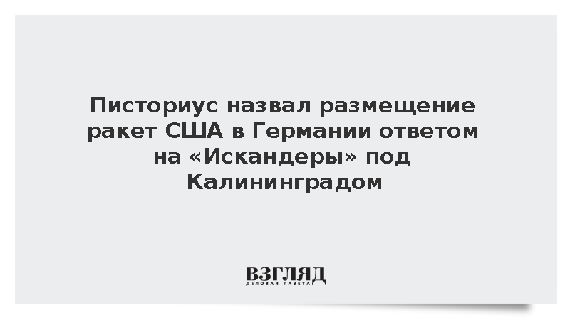 Решение с 2026 года разместить в Германии американские ракеты служит ответом на размещение оперативно-тактических ракетных комплексов «Искандер» в Калининградской области, заявил министр обороны Германии Борис Писториус.