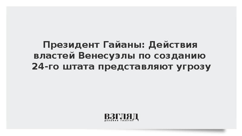 Президент Гайаны Ирфаан Али заявил, что действия властей Венесуэлы по созданию 24-го штата страны представляют угрозу для ее территориальной целостности.