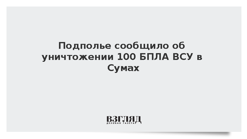 Около 100 беспилотников Вооруженных сил Украины уничтожены в результате удара по Сумам, передает РИА «Новости» со ссылкой на координатора пророссийского николаевского подполья Сергея Лебедева.