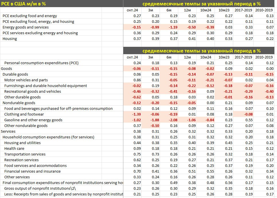 Отклонение от нормы вдвое в октябре, а за три месяца в 1.6 раза, причем что самое важное – нет прогресса в сравнении с 10м23. Дефляционный эффект обусловлен энергией и дезинфляцией в товарах, где цены вернулись к норме.