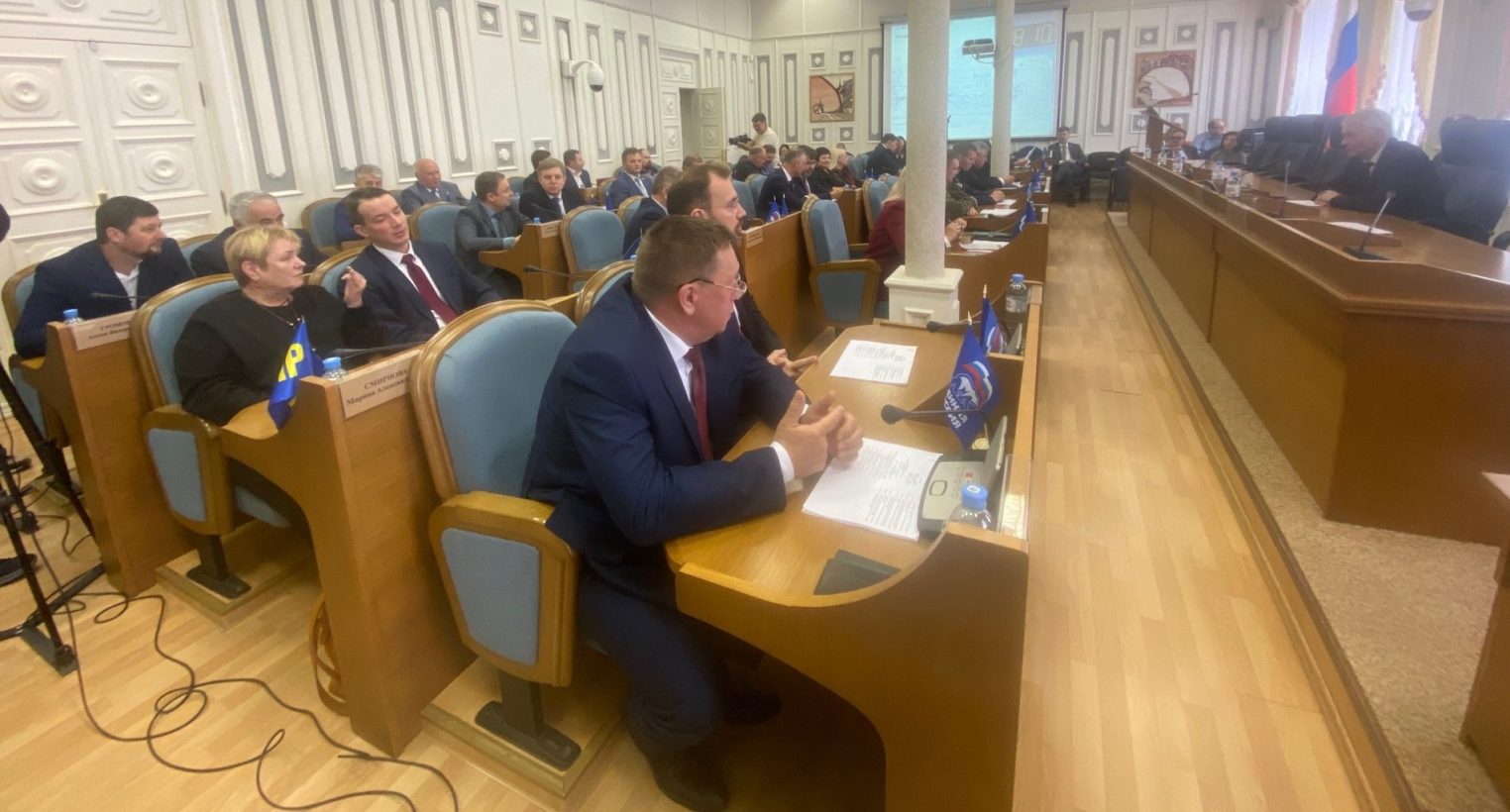 На заседании лично присутствуют все 35 народных избранников, что в стенах нашего регионального законодательного органа случается нечасто. В составе Думы нового созыва — три участника специальной военной операции, три доктора. Четыре депутатских кресла заняли женщины. Прибыл и губернатор Сергей Ситников.