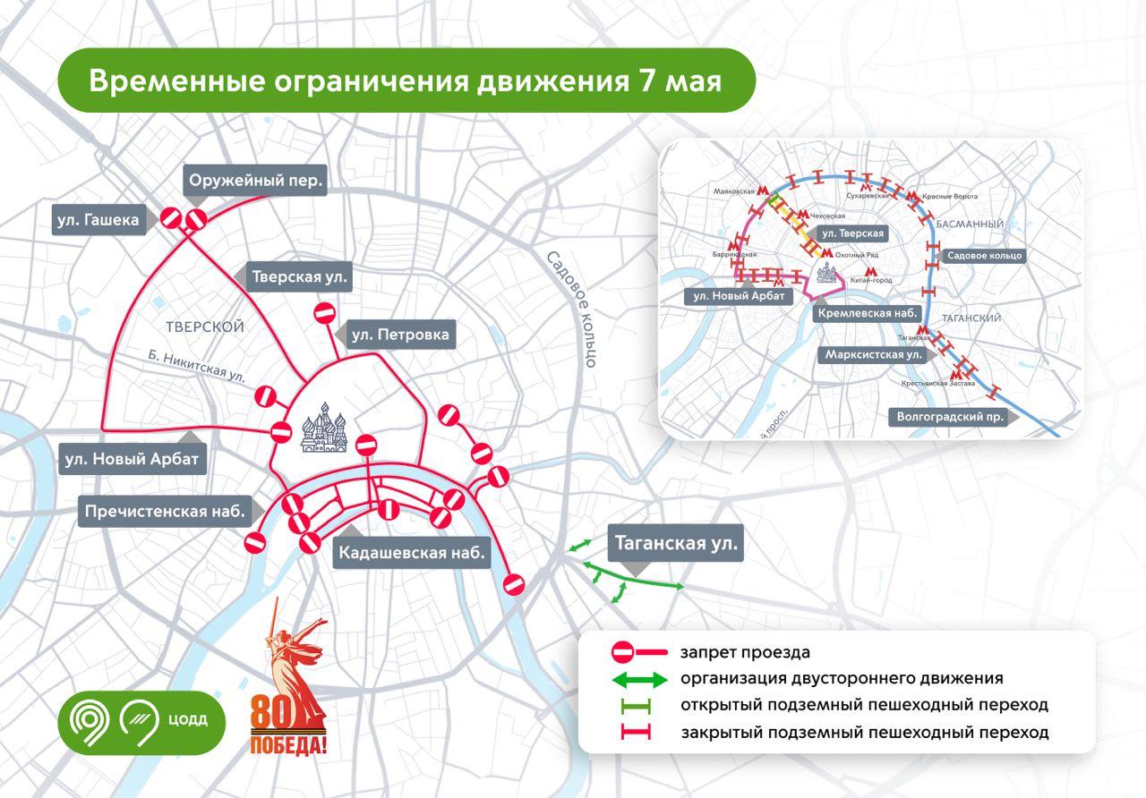 Завтра в Москве с 05:00 временно ограничат движение в центре, для поездок рекомендуется использовать метро.