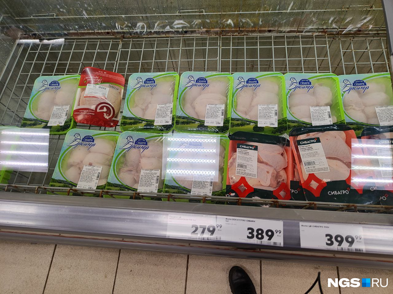 Чаще всего в магазинах можно встретить цену за килограмм курицы — 239,99 рубля. Например, в «Марии-Ра» и «Монетке». «Новосибирская птицефабрика» предложила одну из самых приятных цен на куриное филе — 385 рублей. Дешевле только в «Монетке» и «Чижике». Поймать филе по выставленной цене в 349,99 рубля за три дня походов в «Ярче» так и не удалось.