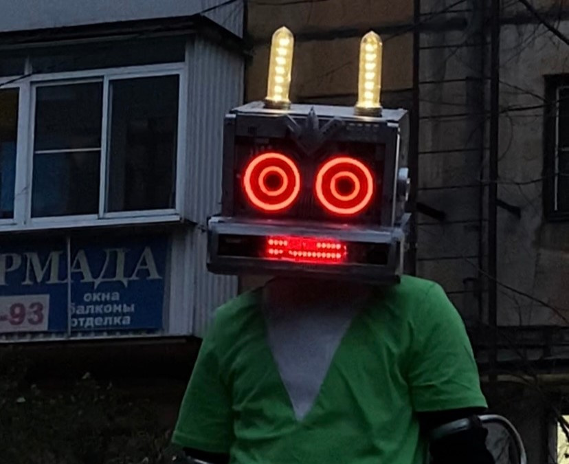 На создание маски у мужчины ушло восемь дней. Всё делалось вручную из того, что пылилось в шкафу. Основой послужили старый DVD-проигрыватель и видеомагнитофон.