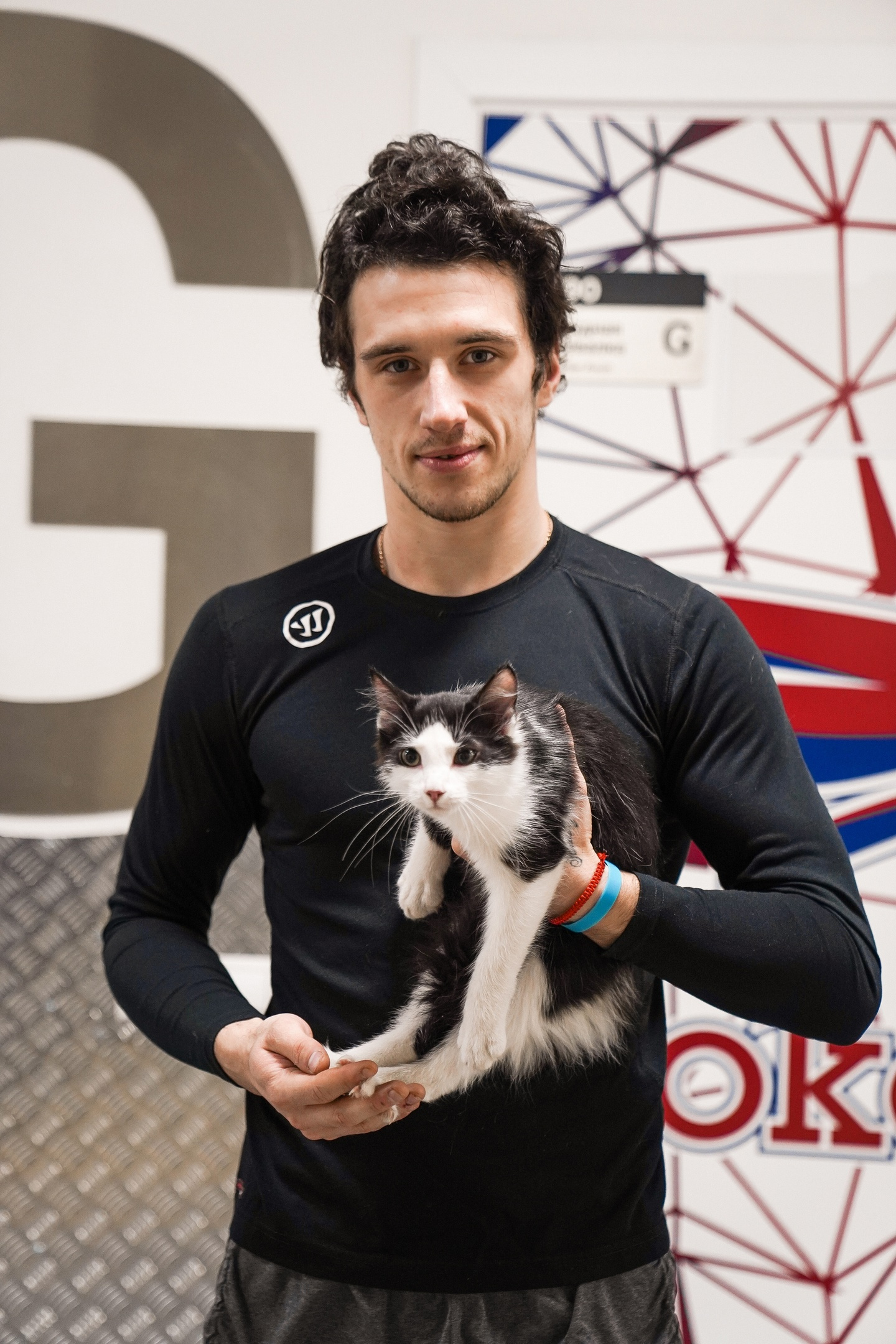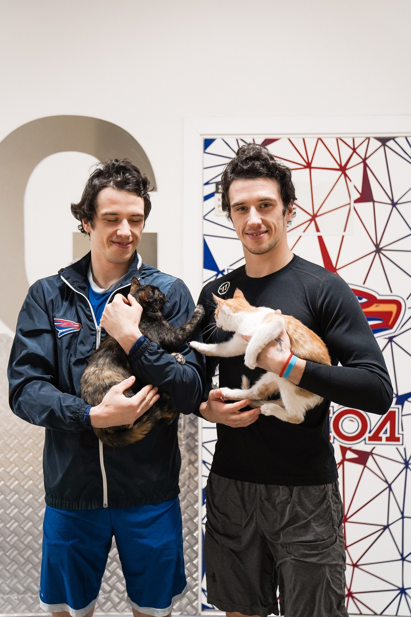 Хоккеистам устроили фотосессию с бездомными котиками и песиками. Так питомцам ищут дом