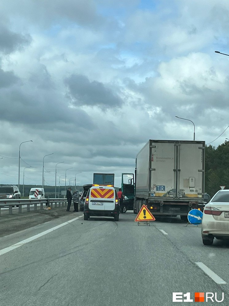 По данным свердловской ГИБДД, сначала столкнулись Chevrolet Camaro и Volkswagen Tiguan, от удара первый автомобиль вылетел в кювет. Затем в 50 метрах от этого места произошла авария с фурой и Lada Kalina.
