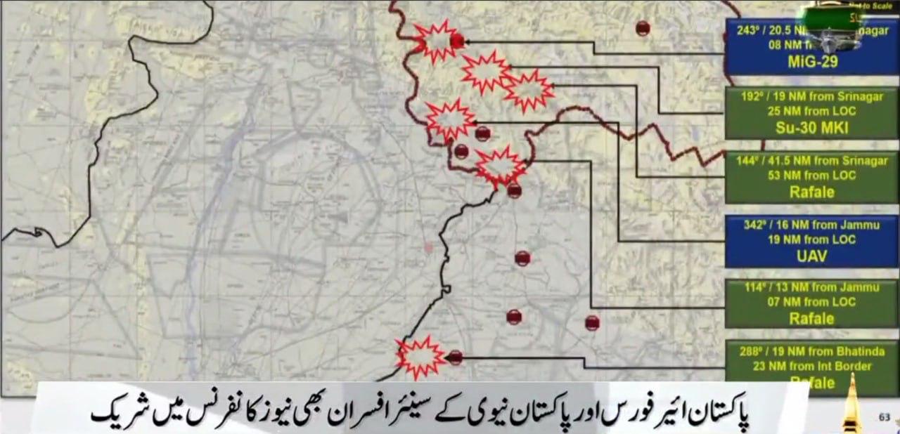 По данным Пакистана, ВВС Индии использовали в ходе удара по стране 72 боевых самолета, из которых пять удалось сбить: три Dassault Rafale, Су-30МКИ и МиГ-29. Также на пресс-конференции представитель военных сил Пакистана сообщил о сбитии беспилотника. Впрочем, индийские дипломаты из Пекина опровергли уничтожение самолетов страны. По данным местных СМИ, не менее 12 террористов ликвидированы и 55 ранены в результате ударов по лагерям боевиков в Пакистане, ответственным за террористическую атаку в Пахалгаме.