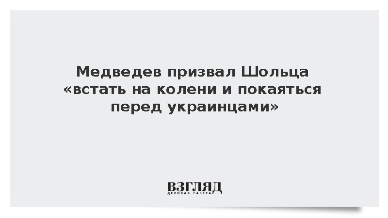 Он считает, что Шольцу нужно «просто встать на колени и покаяться перед украинцами» за ложь о «неизбежной «перемоге», за «возрождение нацизма в форме бандеровщины», «неописуемую бездарность управления». Кроме того, Медведев подчеркнул, что украинцев бросили «на истребление».