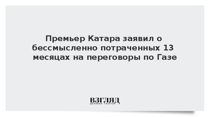 Премьер-министр Катара Мухаммед бен Абдель Рахман Аль Тани заявил, что переговоры по Газе затянулись на 13 месяцев безрезультатно, что привело к дополнительным жертвам.