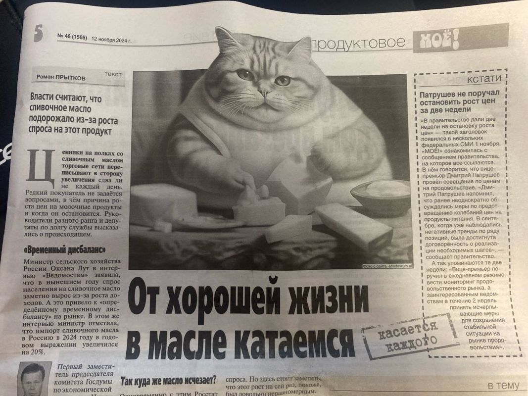 Внимательные сотрудники редакции успели рассмотреть, какое издание выбрал инопланетный гость. Материал с заголовком «От хорошей жизни в масле катаемся» принадлежит корреспонденту «МОЁ!» Роману Прыткову (на сайте был опубликован под другим названием). Он выходил в номере от 12 ноября.