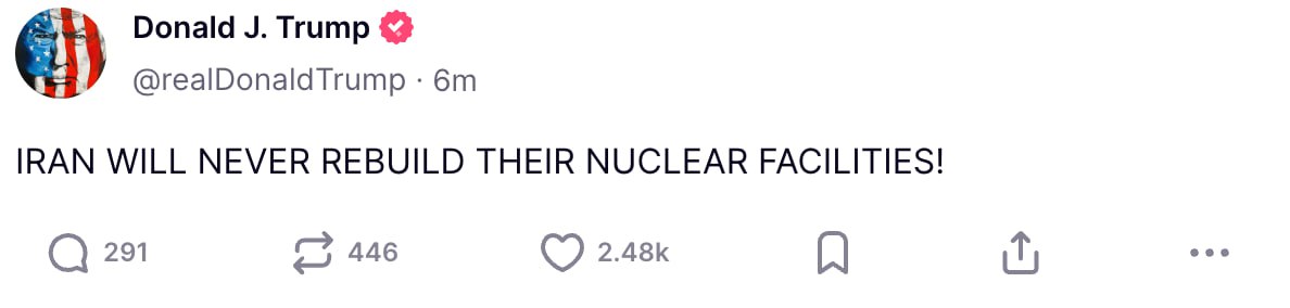Иран никогда не восстановит свои ядерные объекты - написал Трамп