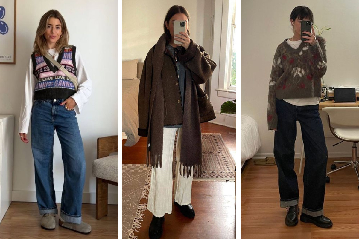Если для вас такое сочетание кажется слишком непривычным, но примерить стиль хочется, замените «дедушкины брюки» на базовые джинсы прямого кроя, лучше в темно-синем оттенке. Grandpa core — это про качество, вещи на века (забываем про синтетику). Приглушенные тона, принты — клетка, елочка или жаккард, мягкая фактура.