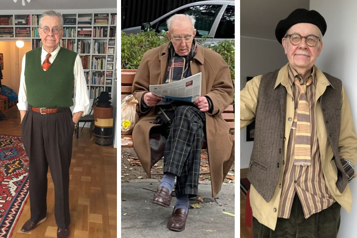 Обязательный элемент стиля — многослойность: дедушки боятся простудиться, от того надевают на себя несколько слоев одежды сразу. Экспериментируйте, комбинируйте узоры, сочетайте винтажные вещи с современными. Можно начать с простого: клетчатая рубашка, свитер, жилет или кардиган в тон, шерстяные или вельветовые брюки.