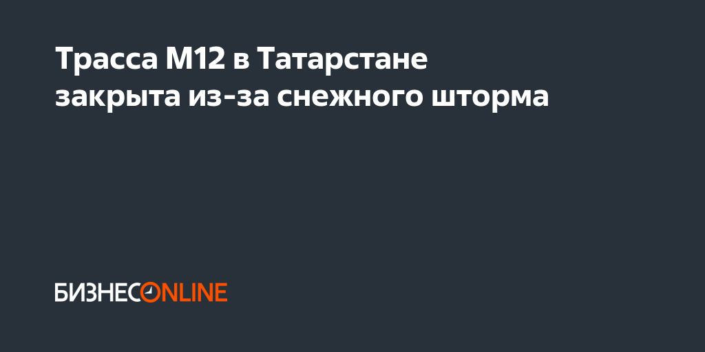 Платная скоростная трасса М12 Москва — Казань на территории Татарстана закрыта для всех видов транспорта. Об этом сообщает госкомпания «Автодор».