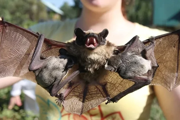 Летучие лисицы и собаки — крупнейшие представители рукокрылых. Они не парятся и просто возят детеныша прямо с собой!
