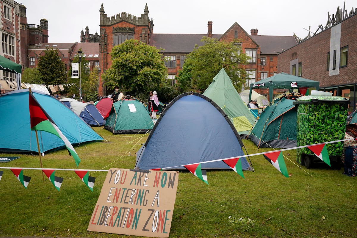En la Universidad de Mánchester se han concentrado más de 100 estudiantes en el llamado Campamento de Resistencia Palestina, en Brunswick Park, para exigir al centro que suprima sus relaciones con empresas armamentísticas como BAE Systems o con la Universidad de Tel Aviv.