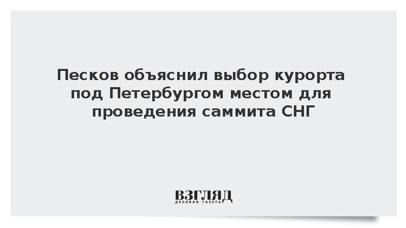 Президент России Путин выбрал курорт «Игора» в Ленинградской области местом проведения неформального саммита СНГ, чтобы показать коллегам уникальные места Петербурга и окрестностей, сообщил пресс-секретарь российского лидера Дмитрий Песков.
