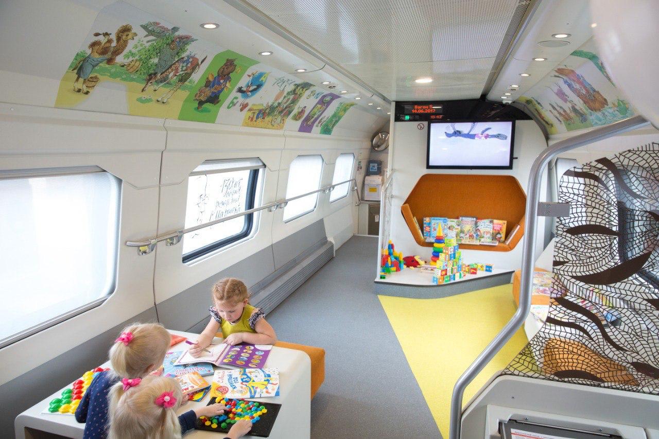 Речь про 62 одноэтажных и 53 двухэтажных поезда. Детские купе в них выполнены в вариантах «Космос» или «Рыцари», столики — в виде шахматной доски.