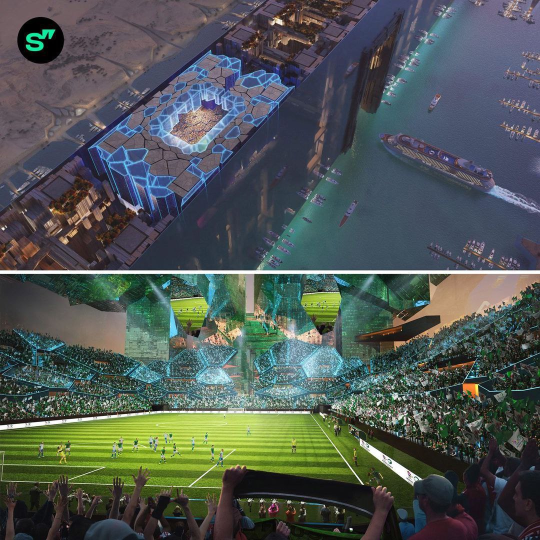 🏟 🇸🇦 Саудовская Аравия показала проекты стадионов к ЧМ-2034. Один из них будет располагаться в The Line – умном городе-здании высотой 500 метров, длина которого составит 170 км