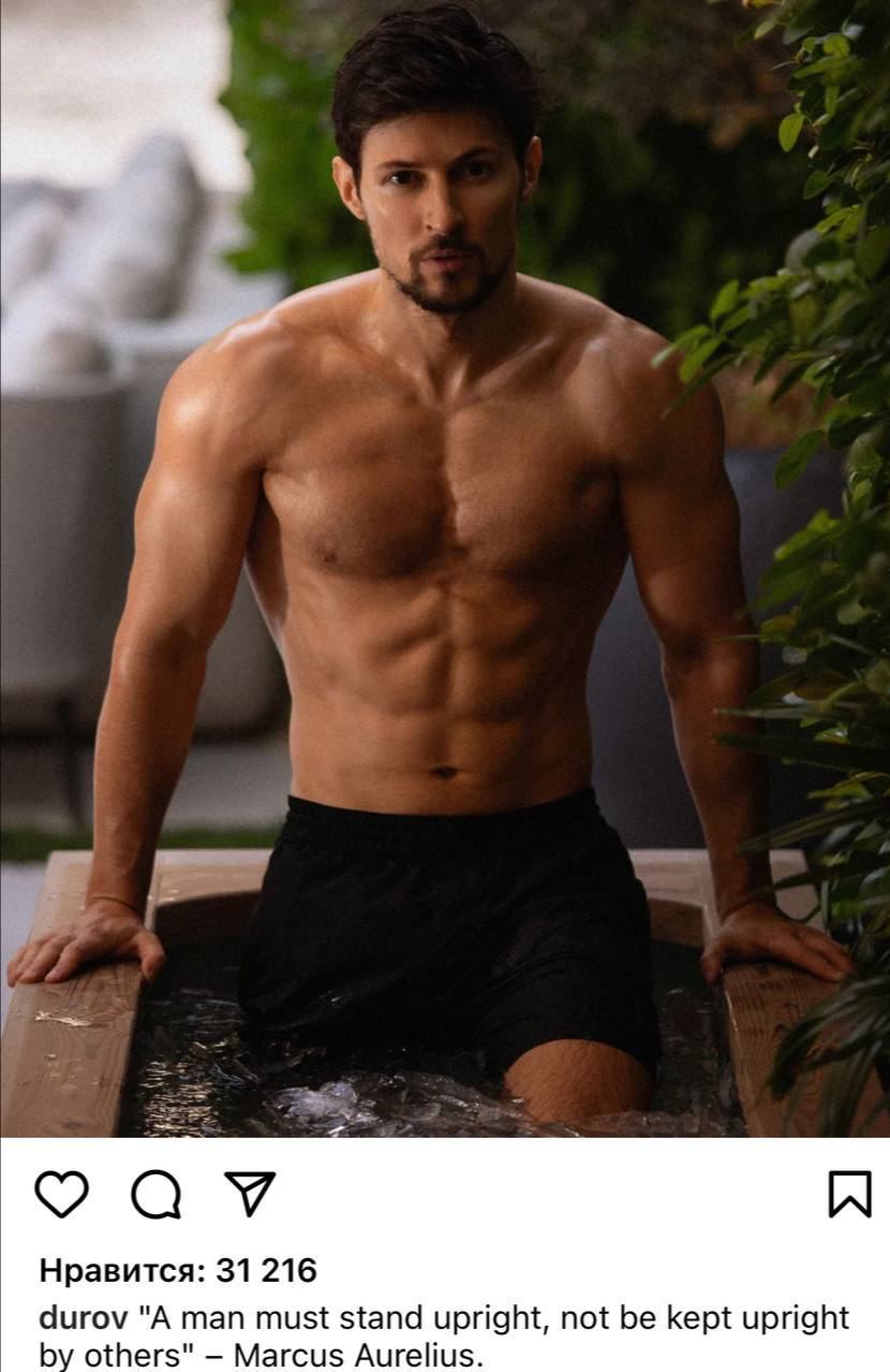 В сети троллят Павла Дурова: тот опубликовал фото с обнажённым торсом, сопроводив цитатой Марка Аврелия.