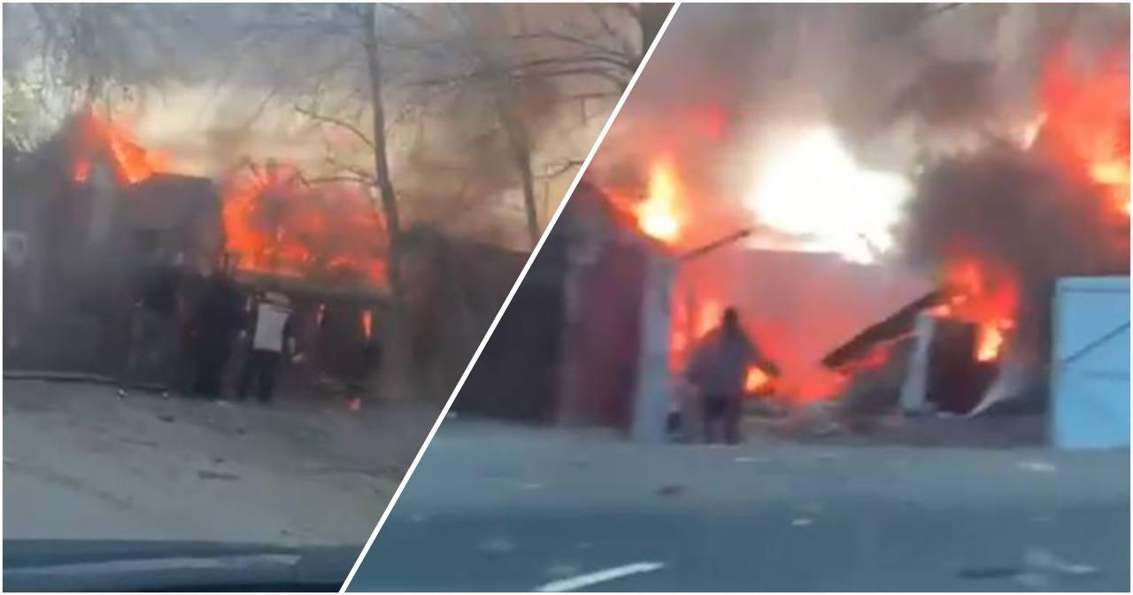 После атаки украинских дронов в подмосковном Софьино загорелось как минимум два дома, пишут в сети.