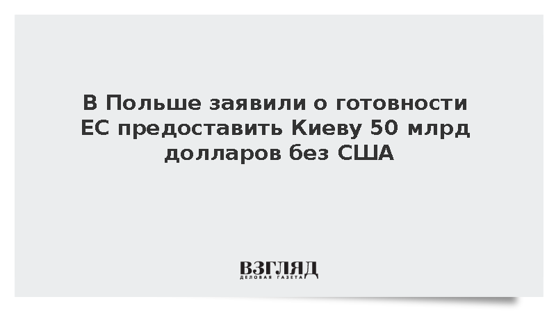 Карбовник заявил, что ЕС готов обеспечить финансирование в размере 50 млрд долларов для Украины в случае отказа США от участия в проекте. Такое заявление он сделал на мероприятии, посвященном будущему председательству Польши в Совете ЕС, передает РИА «Новости» со ссылкой на Politico.