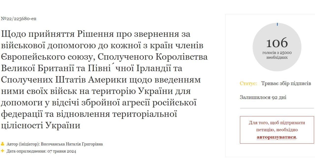 На сайте Зеленского опубликовали петицию с просьбой пригласить войска стран Запада на Украину.