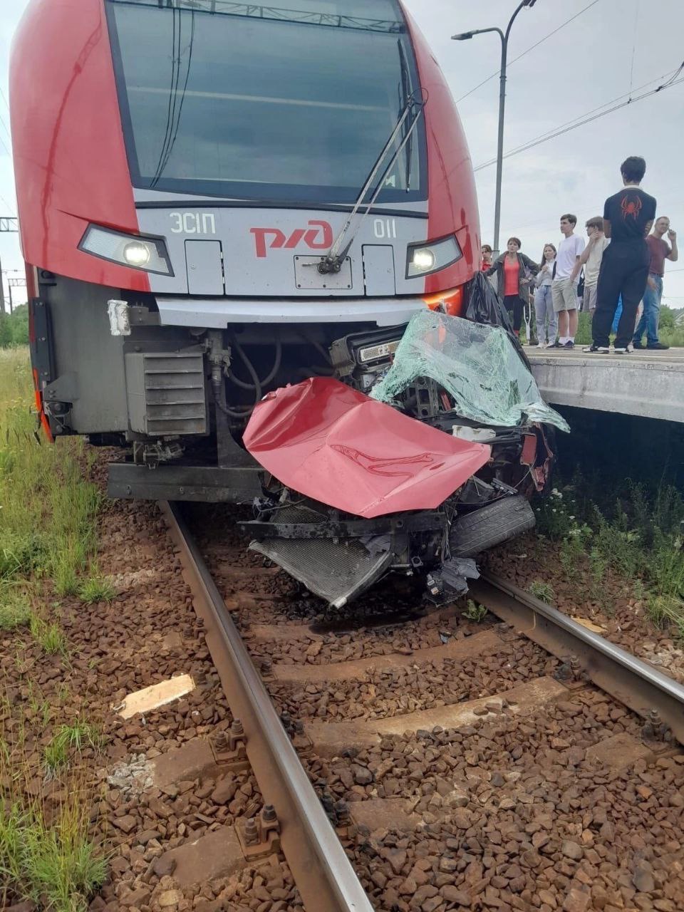 Легковушка против «Ласточки»: машину искорежило после столкновения с поездом под Гатчиной