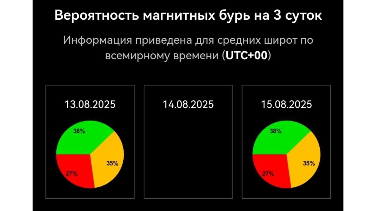 В среду, 13 августа, метеозависимым югорчанам стоит быть начеку. Дело в том, что хотя магнитосфера и должна остаться в относительном спокойствии на протяжении всего дня, вероятность бури в течение суток — довольно высокая. Это следует из данных Лаборатории солнечной астрономии ИКИ и ИСЗФ.