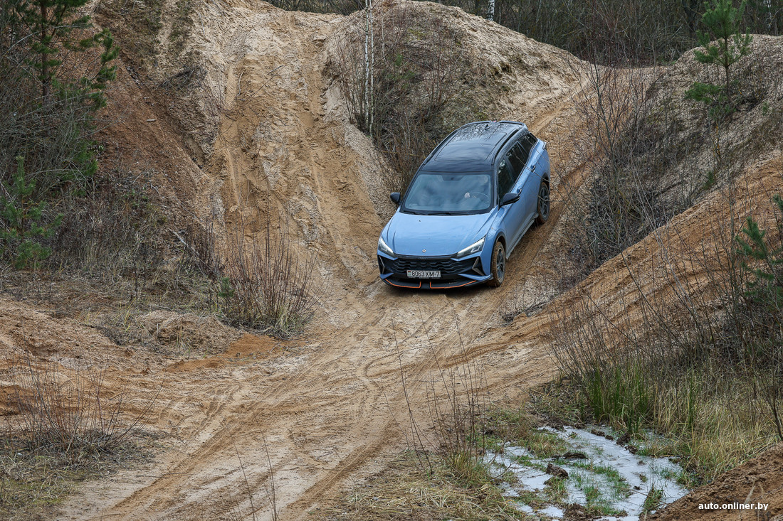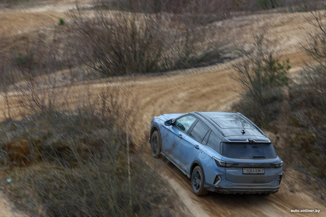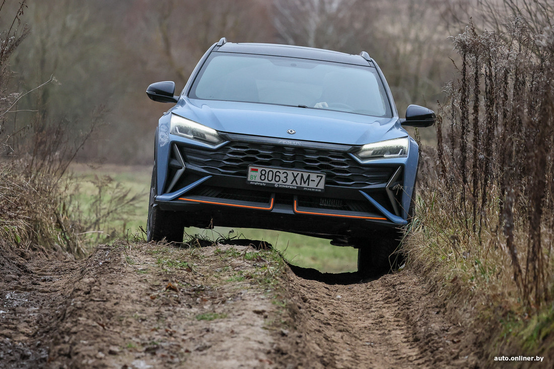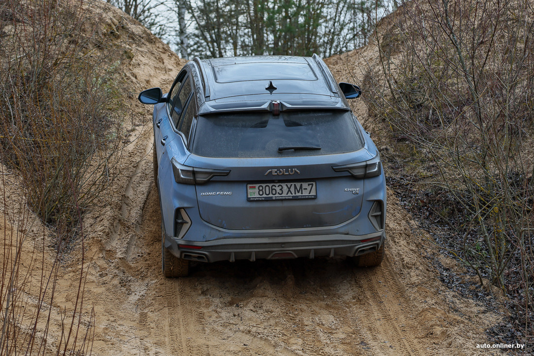 В общем, если ловим диагональное вывешивание, тогда держим газ, работаем рулем — и автомобиль начинает ехать. В данном случае такой подход действительно работает. Правда, помним о том, что автоматические коробки любого типа не любят длительных пробуксовок, а плавный старт и «ползущий» режим «роботы» обеспечивают за счет пробуксовки сцепления. К чести Dongfeng, все издевательства он выдержал без сообщений о перегреве коробки или каких-то иных проблемах.